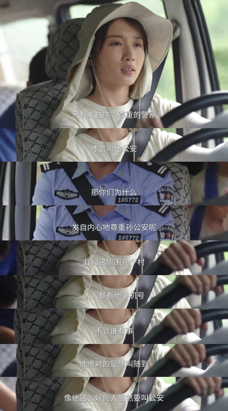 她在车上将常警官本人于孙公安作对比,详细讲了村民为何都发自内心地尊敬老孙,并称他为孙公安。